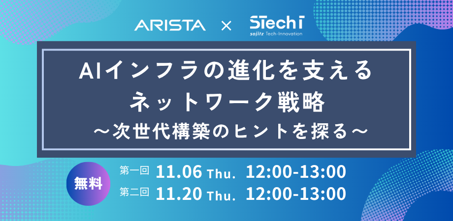 | 12:30〜12:45 | STech IのAI基盤検証結果を大公開(15分) 本セッションでは、当社エンジニアがアリスタ製品を使って行った検証についてご紹介します。 |